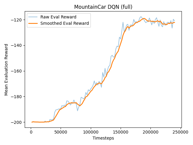 나는 이전에 -120대에서 MountainCar 구현을 마무리 지었지만, 공식 문서에서는 100개 이상의 trials에서 -110 이상의 Reward를 문제 해결의 기준으로 판단한다. MountainCar v0A toolkit for developing and comparing reinforcement learning algorithms. - openai/gymgithub.com 그래서, 이러한 찜찜함을 제거하기 위해, MountainCar 문제에 마저 도전을 수행해보았다.DDQN 적용Double DQN최적 행동 선택과 행동 가치 평가(Q값 평가)의 신경망 분리학습 시의 실시간 모멘텀을 가치 평가와 분리하면, 순간적으로 가치가 높아진 잘못된 행동을 계속 선택하는 현상을 막을 수 있다.하지만, 큰 차이가..