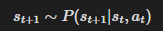 즉, s_t+1로의 전이는 전적으로 현재 상태와 행동 (s_t, a_t)에 의해 결정된다.