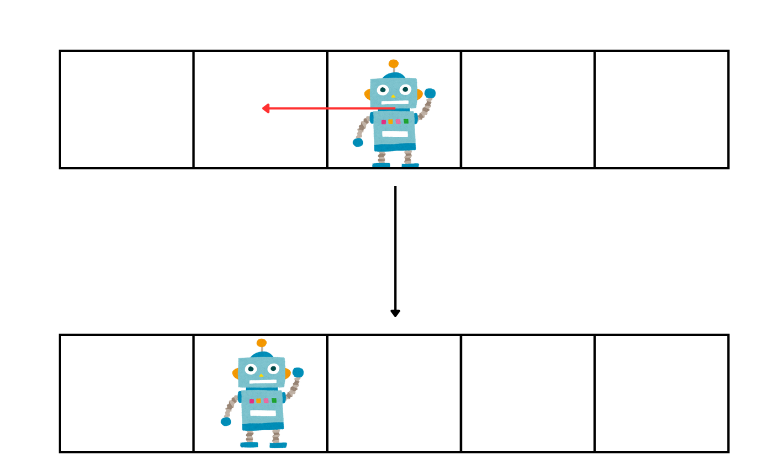 로봇은 격자 세상에서 오른쪽 또는 왼쪽으로 이동할 수 있다.