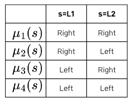 이번에는 상태와 행동이 각 2개씩이므로 정책의 개수를 모두 나타낼 수 있다.