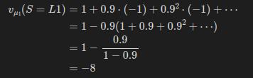 그 다음은 정책이 mu_1일 때 상태 L2에서의 상태 가치 함수이다.