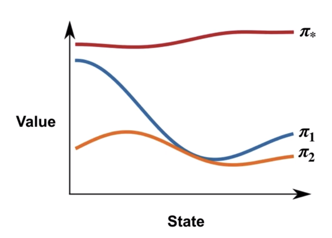 이러한 경우에는 pi1 >= pi2 라 pi1이 더 나은 정책이라고 할 수 있다.
