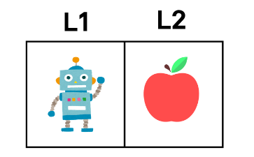 - 에이전트가 L1에서 L2로 이동하면 사과를 받아 +1의 보상을 얻는다.
