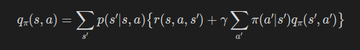 위 식이 바로 행동 가치 함수를 이용한 벨만 방정식이다.