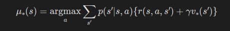 그렇다면 상태 s에서의 최적 행동은 다음과 같이 구할 수 있다.