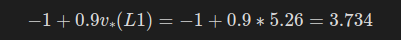 - v_\pi(L1)=-2.25 는 L1에서 시작해 pi 를 계속 따르면 장기적으로 받는 할인 보상의 기대 총합이 -2.25임