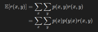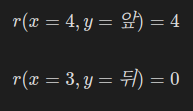이번 문제에서의 보상은 x와 y값에 의해 결정된다. 따라서 보상을 함수 r(x,y)로 나타낼 수 있다.