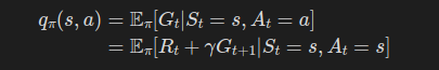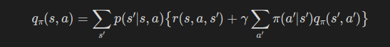 위 식이 바로 행동 가치 함수를 이용한 벨만 방정식이다.