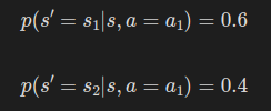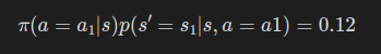 - 에이전트가 0.2의 확률로 행동 a1을 선택하고 0.6의 확률로 상태 s1로 전이한다.