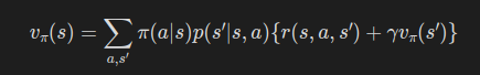 또한, 상태 가치 함수와 행동 가치 함수 간의 관계를 이용하면 다음과 같이도 표현이 가능하다.
