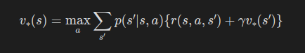 이 식이 바로 상태 가치 함수의 벨만 최적 방정식이다.
