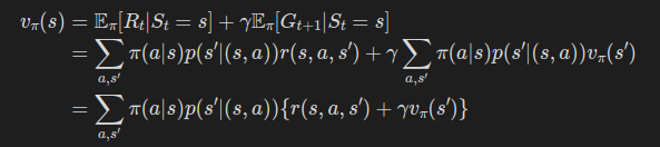 벨만 방정식의 도출 과정이 강화학습의 기초(즉, 새로운 기법의 적용 가능성 탐색/연구를 위한 기초)가 되기 때문에, 정확히 인지하고 넘어가는 것이 중요하다.