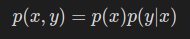 또한 x와 y가 동시에 일어날 확률은 아래와 같다.