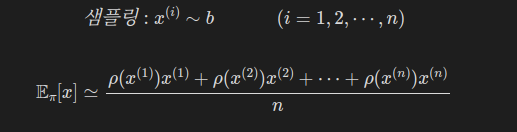 이 기댓값을 몬테카를로법으로 근사하려면 x를 확률 분포 pi에서 샘플링하여 평균을 내면 될 것이다.