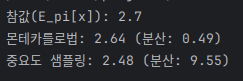 근데 분산이 9.55로, 몬테 카를로 때보다 분산이 훨씬 큰 것을 확인할 수 있었다.