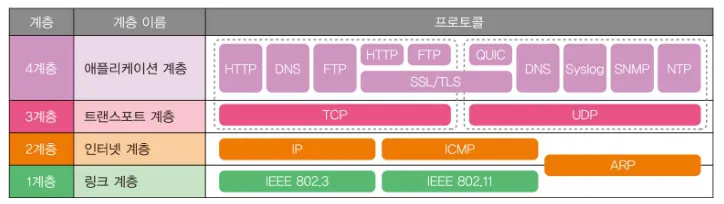- 프로토콜은 계층 별로 정의되어 있다.