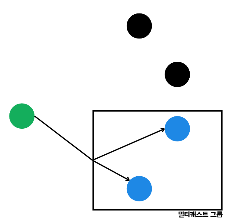 특정 그룹에 속한 개체와의 1:n 통신을 의미한다.
