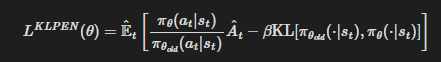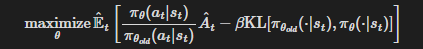 TRPO를 정당화하는 이론은 사실 제약 대신 패널티를 쓰는 방식을 제안한다. 즉 어떤 계수 β에 대해 다음의 비제약 최적화 문제를 푸는 것이다.