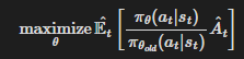 TRPO는 다음의 ‘대리(surrogate) 목적함수’를 최대화한다.