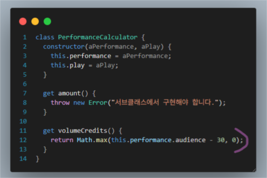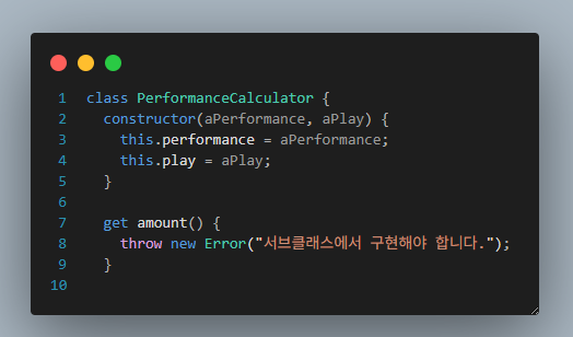 그럼 이제 상위 클래스인 PerformanceCalculator는 다음과 같이 수정할 수 있어진다.