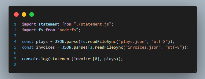 이번에는 renderPlainText()의 다른 두 인수(invoice, plays)를 살펴보자.