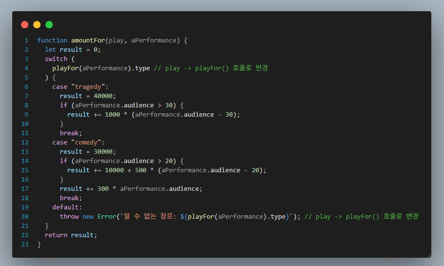 이어서 amountFor()도 비슷하게 바꾼다.