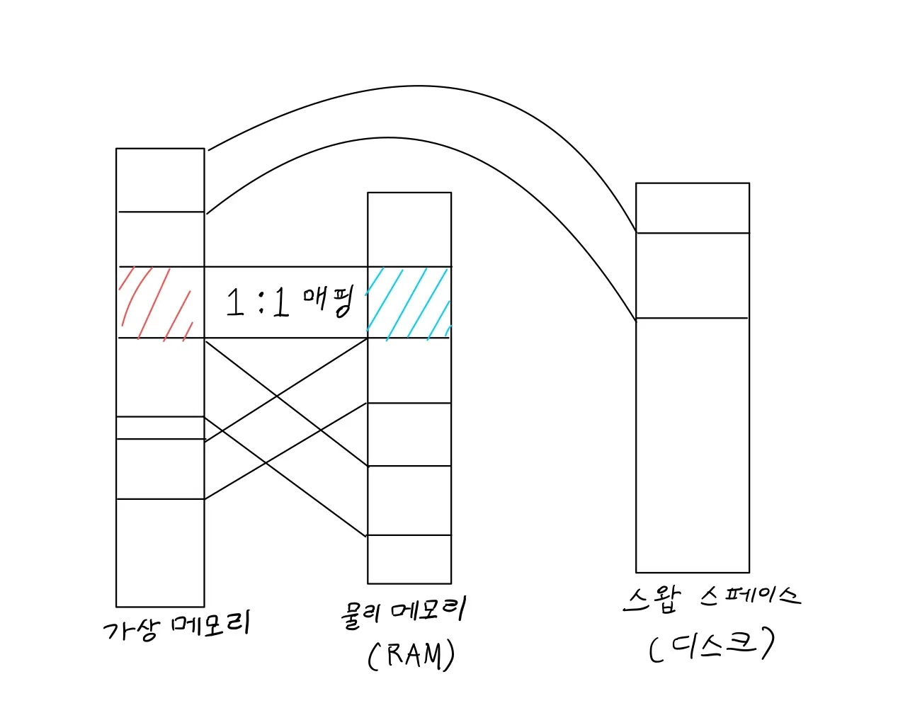 - 프로세스가 사용하는 메모리 계층과 할당되는 물리 메모리 계층을 분리한다.