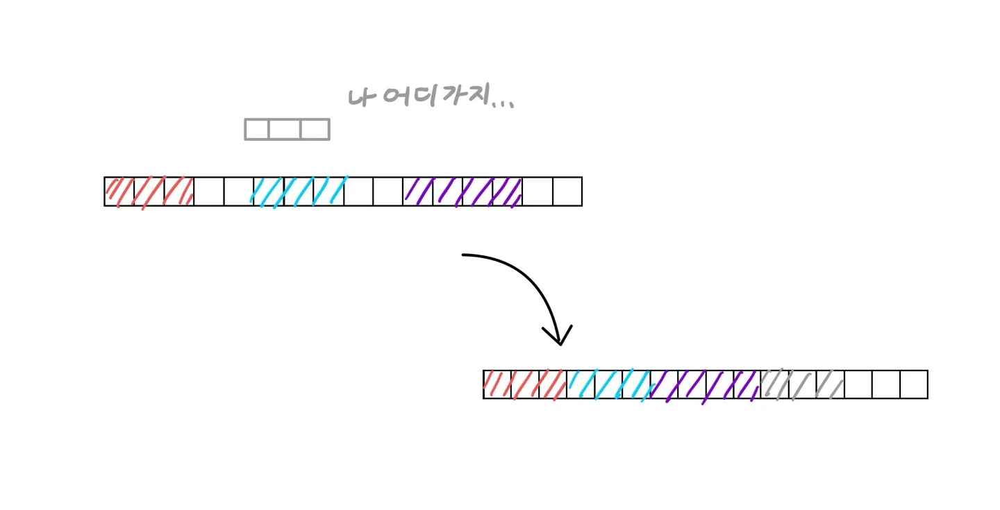 - 이때, 메모리를 지운 상태로만 그대로 두면, 메모리 fragmentation이 매우 심해진다.
