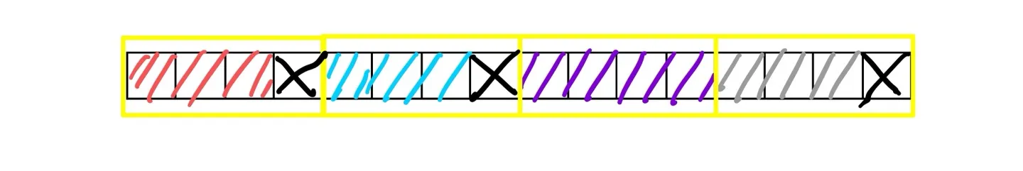 내부 단편화가 발생한 상황. X표시된 의미없이 사용되지 않는 할당된 공간이 존재한다.