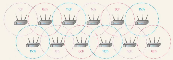 - 따라서, 액세스 포인트 배치는, 채널과 셀을 조합해서 틈이 생기지 않도록 메꿔야 한다.