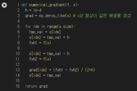편미분은 현재 벡터에 대한 그라디언트를 계산하는 방법이다.