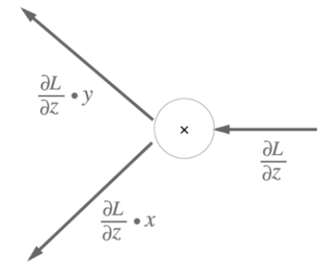 • 출력 쪽 기울기를 가지고, 각 노드의 지역 도함수를 곱해 입력 쪽 기울기로 분배할 수 있다.