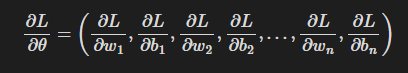 모든 레이어의 각 가중치와 편향 w, b에 대한 L의 편미분값이다.