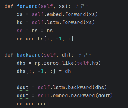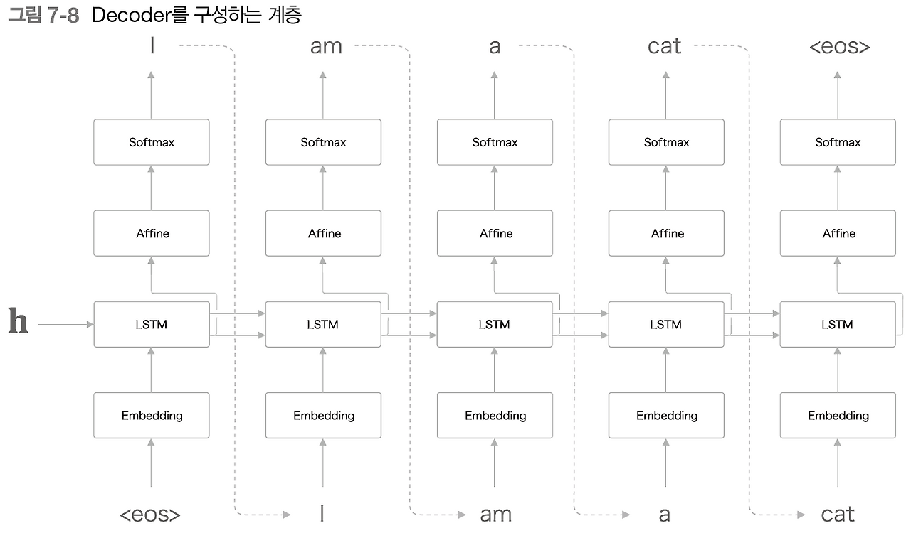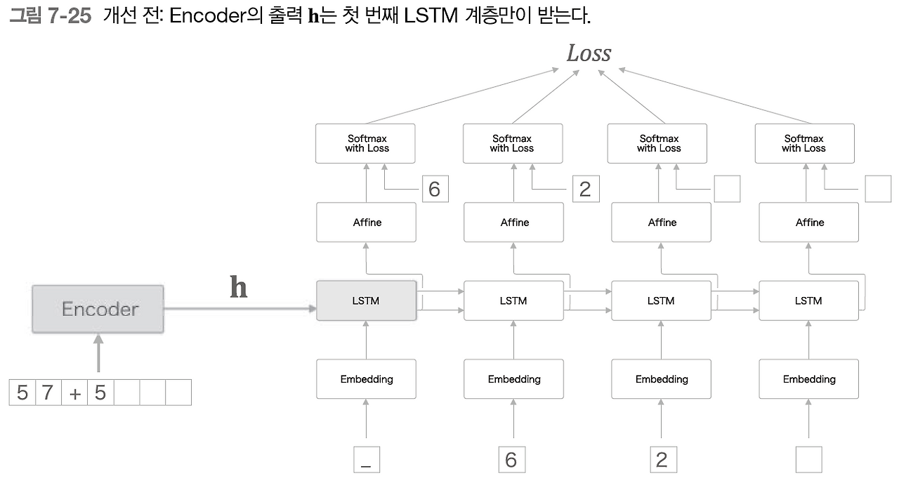 그런데 Encoder가 출력하는 벡터 h는 LSTM 계층의 마지막 은닉 상태이다.