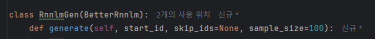 우선 RnnlmGen이 상속받는 클래스를 BetterRnnlm으로 바꾸었다.