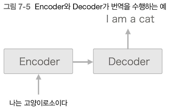 - RNN을 2개 조합함으로써 시계열 데이터를 다른 시계열 데이터로 변환할 수 있다.