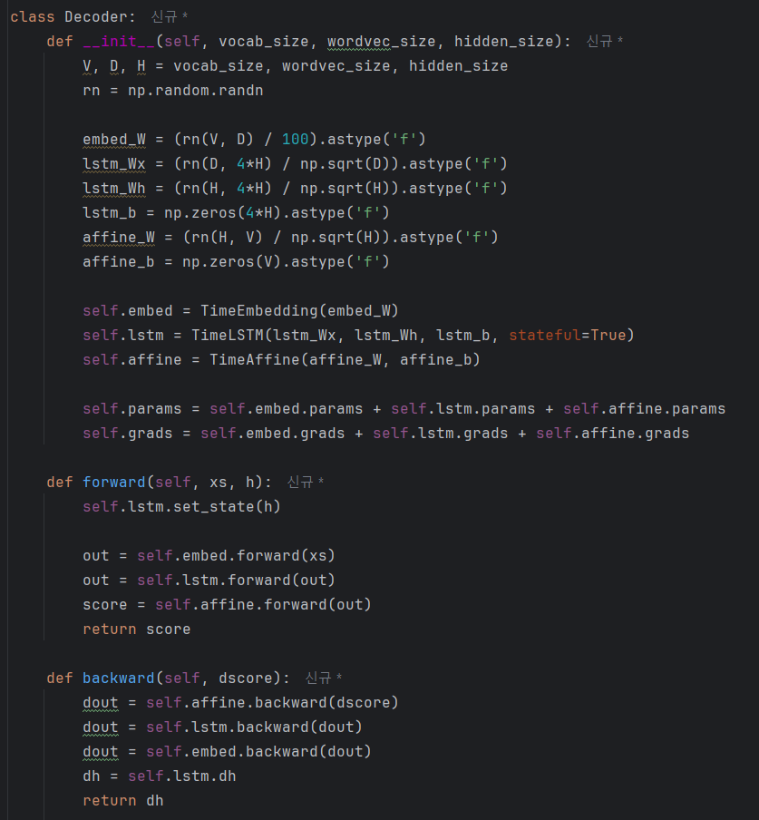 그럼 PeekyDecoder와 PeekySeq2seq의 구현을 살펴보자.