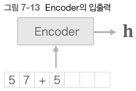 인코더는 LSTM에서 출력하던 각 '시각별' 은닉 상태는 출력하지 않고, '모든 문장을 통과한 뒤 나온' 은닉 상태만 출력한다.