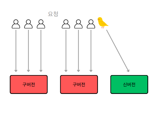 새 버전을 먼저 일부 사용자(소수 비율) 에게만 배포한다.
