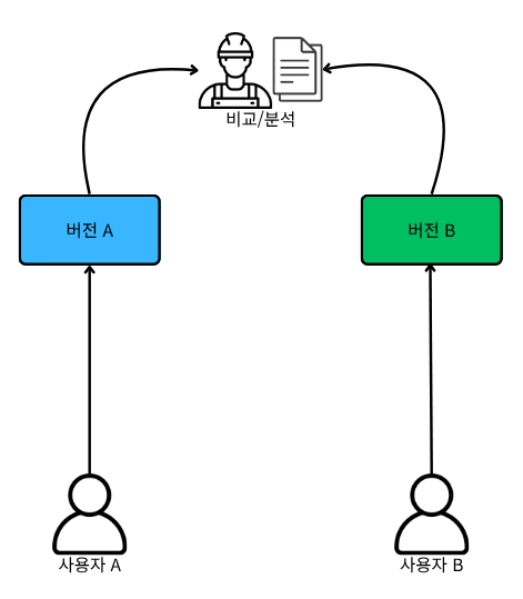 사용자들을 두 개 이상의 서로 다른 페이지나 기능 버전에 무작위로 분배한 뒤, 어느 버전의 성능이 더 좋은지 분석한다.