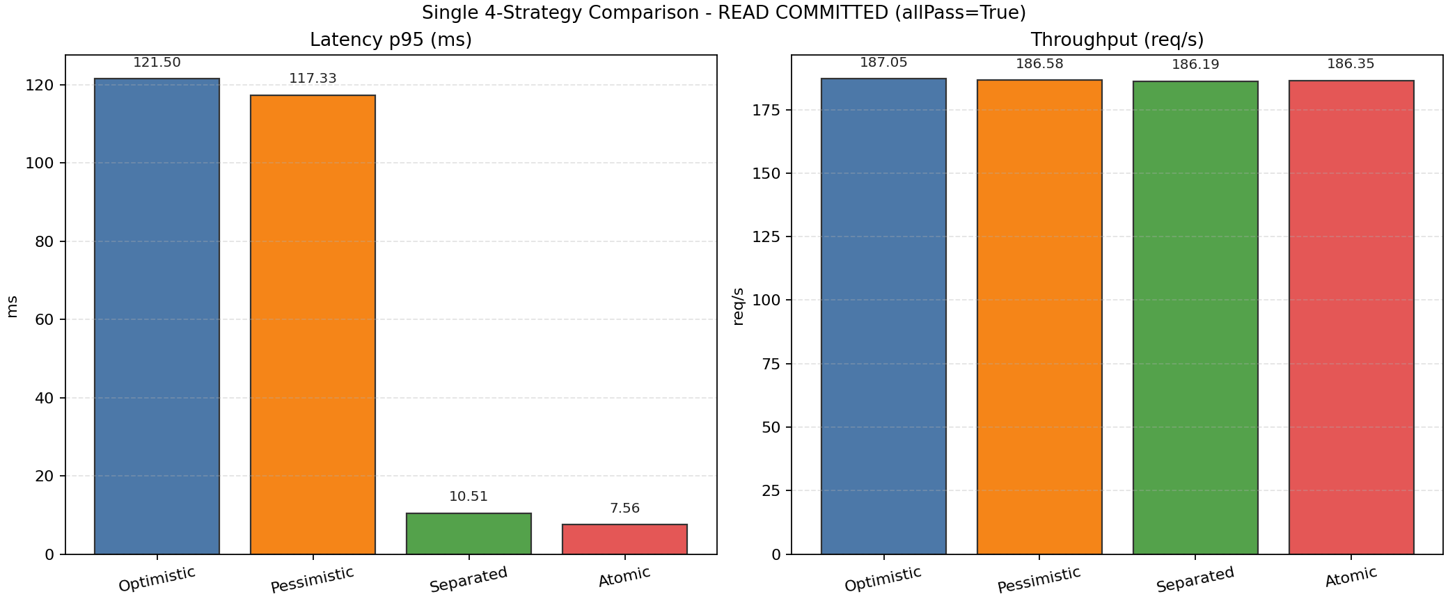 - 동시성 제어 전략 비교(비관적/낙관적/원자적/트랜잭션 분리)