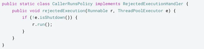 CallerRunsPolicy는 내부적으로run()메서드를 직접 호출하는 방식으로 작업을 처리한다.