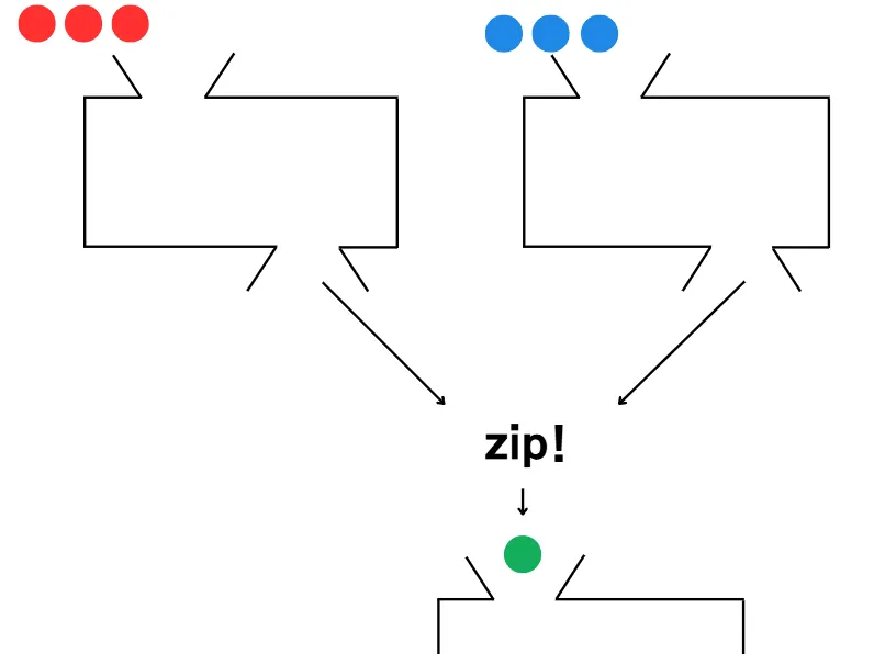 - zip은 여러 개의 출력을 하나의 입력으로 결합하기 위한 도구이다. 주로 Mono 사용 시 여러 입력을 모두 수집할 때까지 대기한 후 하나의 결과로 결합하는 데 사용된다.