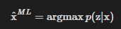 최대 빈도 추정기는 측정 벡터 z의 확률밀도함수를 최대로 하는 x의 값을 추정값으로 정의한다.