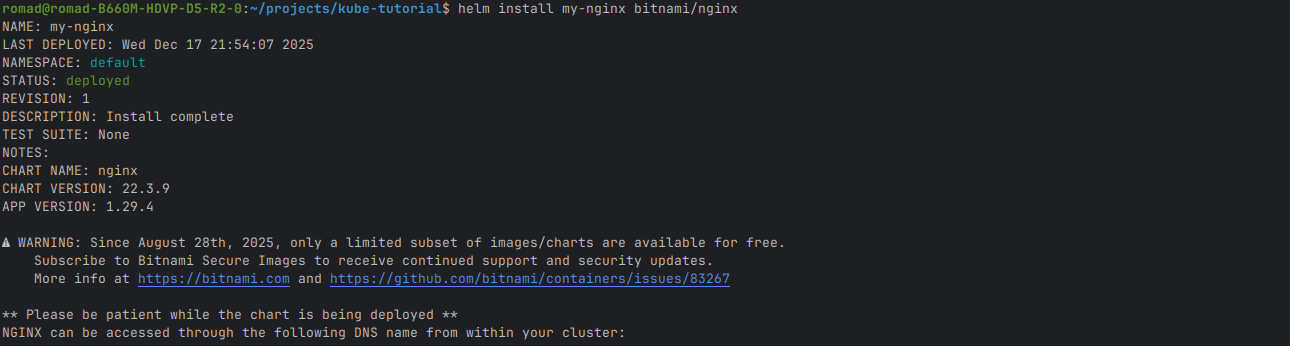 - 릴리스명은 같은 차트를 여러 번 설치할 때 구분 용이며, 여기선 my-nginx로 지정했다.