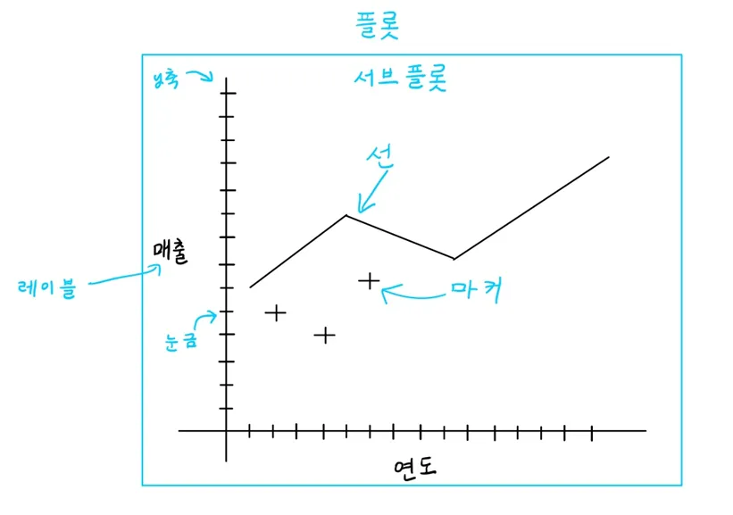 맷플롯립은 크게 다음 세가지 객체를 사용하여 그래프를 구성한다.