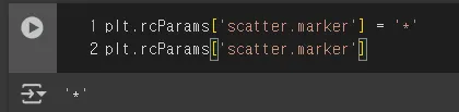 하지만 이는 해당 pyplot의 기본 값을 바꾼 형태이기 때문에, 이후 생성되는 모든 산점도의 마커가 별(*)모양으로 표기되게 된다.