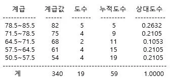 참고: 히스토그램에 나오는 구간과 도수를 표로 요약한 것을 ‘도수분포표’라고 한다.