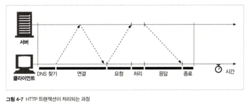 HTTP 트랜잭션은 단순히 “요청-처리-응답”으로만 끝나는 것이 아니라, DNS 쿼리와 TCP 핸드셰이크 등 다양한 외부 요소가 시간을 잡아먹는다.