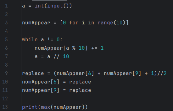 우리가 구하고자 하는 것은, 애초에 등장한 숫자들의 등장 횟수의 최댓값 이었다.